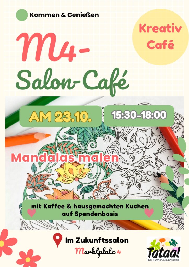 Zusammen kommen, gemütlich ins Gespräch kommen, lecker Kuchen essen, Kaffee oder Tee trinken, den Zukunftssalon kennen lernen und … an dem Tag ein paar Mandalas malen. Gemeinsam kreativ sein und sich den Farben und Formen hingeben.