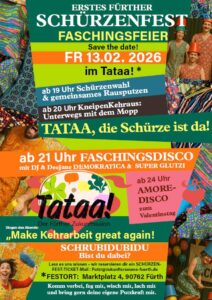 Die musterreichste Faschingsfeier die es je gab 😉 FR 13.02. 2026 im Tataa! Slogan des Abends: „Make Kehrarbeit great again! – Wir wischen das Alte weg und tanzen das Neue