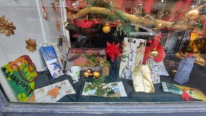 Hohoho im Zukunftssalon Fürth mit dem Adventskalender der lebendigen Schau-Fenster Die schönen, großen Schaufenster im „Tataa –Fürther Zukunftssalon“ auf dem Grünen Markt (Marktplatz 4) verwandeln