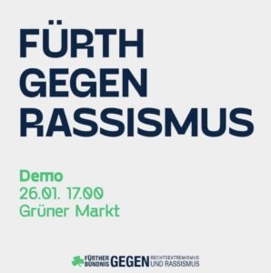 Das Bündnis gegen Rechts ruft unter dem Motto „Fürth gegen Rassismus“ zu einer Demonstration am 26. Januar um 17 Uhr auf dem Platz vor dem